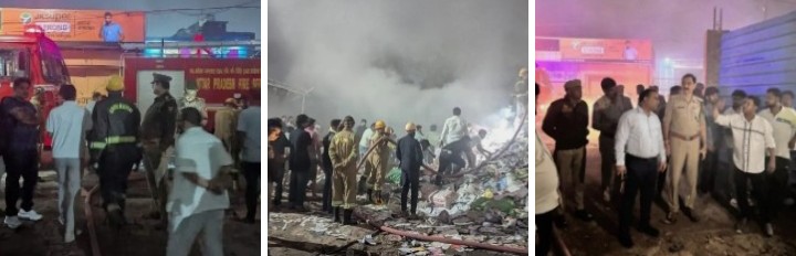 आधी रात को रद्दी के गोदाम में लगी भीषण आग, लाखों का माल जलकर स्वाहा