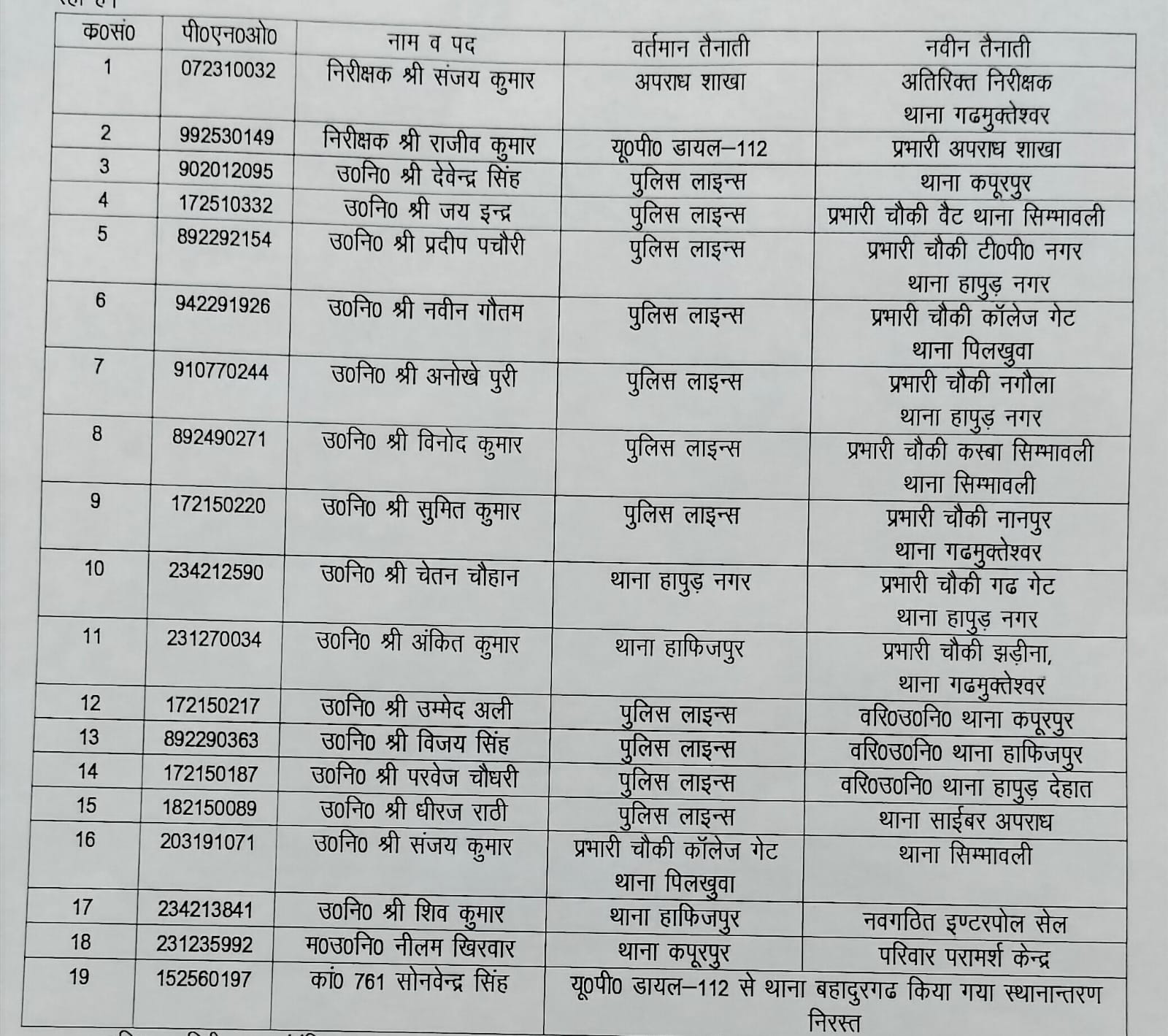 अपराध शाखा के इंस्पेक्टर संजय कुमार को थाना गढ़मुक्तेश्वर का अतिरिक्त प्रभारी निरीक्षक के रूप में तैनात किया है।