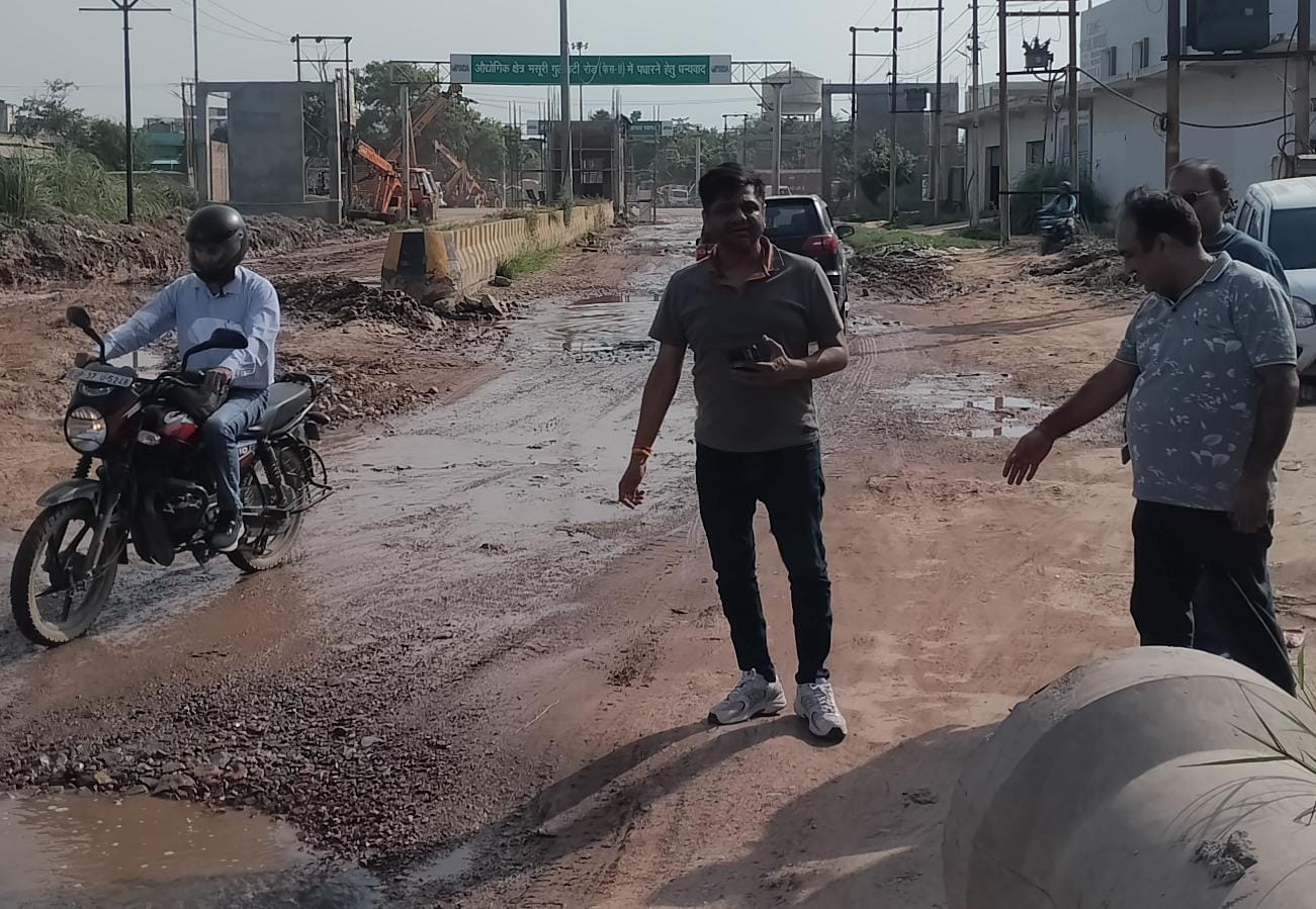 परिचय । औद्योगिक क्षेत्र में जर्जर सड़क और जलभराव को देखते धौलाना औद्योगिक कमेटी के लोग ।