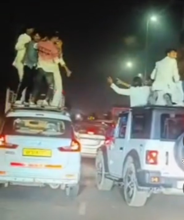 जानकारी के अनुसार हापुड़ के बुलन्दशहर रोड़ पर देर रात दो कारों में सवार दर्जनों युवकों ने चलती कारों की छत पर खड़े होकर हुड़दंग मचाते हुए खतरनाक स्टंट करते हुए रील बनाई। जिसका वीडियो सोशल मीडिया पर वायरल हो रहा है।