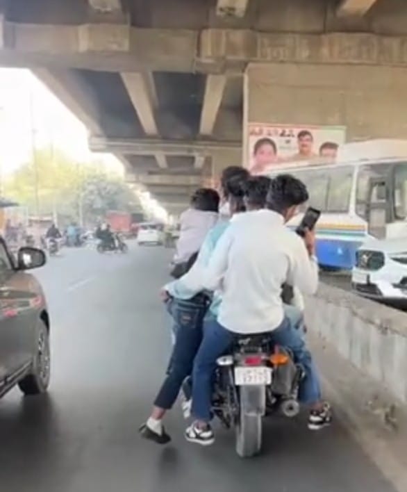 वायरल वीडियो में साफ दिख रहा है कि चलती बाइक पर चार युवक सवार हैं और एक युवक को चारों ने हाथों में थामकर साइड में लटकाया हुआ है। सड़क पर मौजूद लोग भी यह दृश्य देखकर हैरान रह गए। किसी ने इसका वीडियो बनाकर वायरल कर दिया।