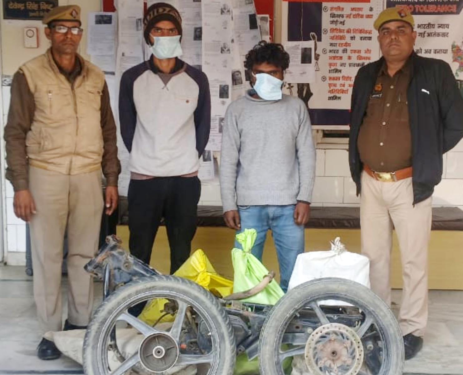 चोरों के कब्जे से बाइक के पाटर््स व बाइक काटने के उपकरण बरामद