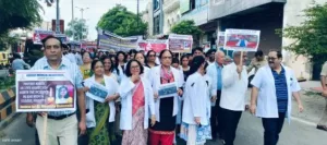 छात्रा रेप व हत्याकांड व डाक्टरों के हमले के विरोध में डाक्टर्स ने हड़ताल कर शहर में काली बांधकर निकाला पैदल मार्च, सौंपा ज्ञापन