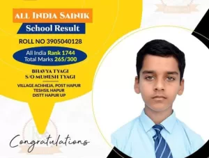 छात्र भव्य त्यागी का बोर्डिंग सह आवासीय विद्यालय की सीएमकेपी यूपी परीक्षा में हुआ चयन,दी बधाई