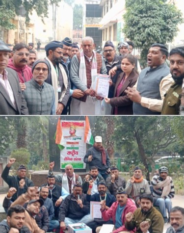 नगर पालिका में मंगलवार को शहीद स्मारक पर यूजीसी एक्ट के विरोध में राष्ट्रीय सैनिक संस्था के कार्यकर्ताओं ने धरने पर बैठे और कानून के विरुद्ध राष्ट्रपति के नाम अपने खून से