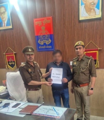 हापुड़ । थाना धौलाना क्षेत्र निवासी एक उघमी से साइबर ठगों ने ट्रक बुकिंग के नाम पर 43 हजार रुपए की ठगी कर ली। पुलिस ने साइबर ठग से 20 हजार रुपए वापस करवा दिए।
