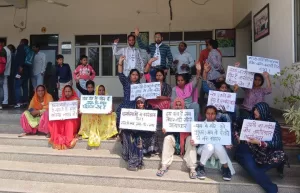 दबंगों की धमकियों से परेशान लोगों का जिला मुख्यालय पर प्रदर्शन, प्रशासन पर लगाया दोषियों को बचानें का आरोप