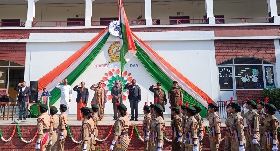 हापुड़ । श्रीमती कमला अग्रवाल गर्ल्स इंटर कॉलेज हापुड में गणतंत्र दिवस समारोह का आयोजन किया गया। इस समारोह में विद्यालय के बच्चों ने बढ़-चढ़कर भाग लिया और अपने देशभक्ति के जज्बे को प्रदर्शित किया। कार्यक्रम का शुभारंभ विद्यालय के एनसीसी कैडेट्स द्वारा विद्यालय की प्रधानाचार्या श्रीमती पारुल शर्मा, मैनेजर एडमिन बृजमोहन गुप्ता,मैनेजर एस्टेट नरेश कुमार अग्रवाल, एनसीसी अधिकारी प्रियंका शर्मा व मोनिका सागर को ध्वजारोहण स्थल तक पायलटिंग करते हुए ले जाया गया। इस के तत्पश्चात् प्रधानाचार्या द्वारा झंडा फहराया गया। एनसीसी अधिकारियों ने तिरंगा को सलामी दी व राष्ट्रगान व झंडा गीत प्रस्तुत किया गया। इस अवसर पर देश के शहीदों को याद करते हुए विभिन्न नारे लगाए गए। इस के तत्पश्चात् एनसीसी कैडेट्स द्वारा झंडा को सलामी देते हुए परेड का आयोजन किया गया। एनसीसी कैडेट्स ने परेड के माध्यम से अपने सैन्य कौशल और अनुशासन का प्रदर्शन किया। उनकी परेड और ड्रिल ने दर्शकों को मंत्र मुक्त कर दिया। विद्यालय के बच्चों ने विभिन्न प्रकार के सांस्कृतिक कार्यक्रम प्रस्तुत किए जिनमें देशभक्ति गीत नृत्य और नाटक शामिल थे। एनसीसी कैडेट्स द्वारा प्रस्तुत देश भक्ति गीत ने सभी का मन मोह लिया। इन कार्यक्रमों में दर्शकों को देशभक्ति की भावना से प्रेरित किया। विद्यालय में होने वाली विभिन्न प्रतियोगिताओं जैसे-अंतरराष्ट्रीय हिंदी ओलंपियाड, भारतीय ज्ञान परीक्षा, एस०ओ०एफ ० में प्रतिभाग करने वाले सभी छात्र-छात्राओं व अध्यापिकाओं को भी को पुरस्कार वितरित किया गये।