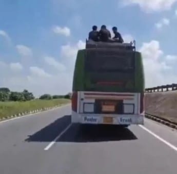 वायरल हुए वीडियो में साफ दिख रहा है कि बस की सभी सीटें भरने के बाद यात्रियों को छत पर चढ़ा दिया गया। जिसका वीडियो सोशल मीडिया पर वायरल हो रहा है।