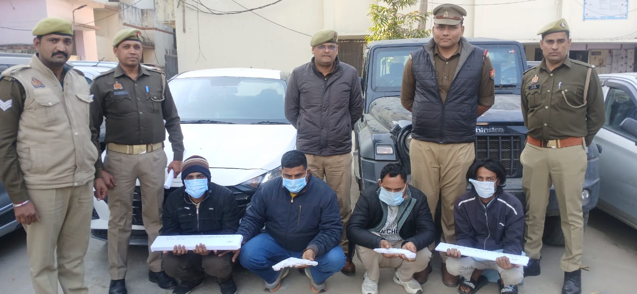 एएसपी विनीत भटनागर ने बताया कि जनपदीय स्वाट टीम व थाना हापुड़ नगर की संयुक्त टीम ने चितौली रोड भट्टे के निकट से चार वाहन चोरों को गिरफ्तार कर अंतर्राज्यीय वाहन चोर का भंडाफोड़ कर दिया। गिरफ्तार अभियुक्तों के कब्जे से चोरी की थार गाड़ी,आई-20 कार व अवैध असलाह बरामद किया है।