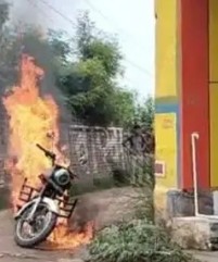 बाजार जा रहे मेडिकल छात्र की बाईक में लगी आग, जलकर हुई खाक