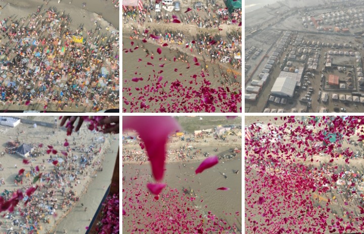 बुधवार सुबह ही लखनऊ से मुख्यमंत्री योगी आदित्यनाथ ने अपना हेलीकॉप्टर भेजा, जहां गंगा में डुबकी लगा रहे लाखों श्रद्धालुओं पर गुलाब के फूलों से पुष्प वर्षा की गई। इस दौरान, भक्ति और आस्था का माहौल देखने को मिला, जो पूरे वातावरण में महसूस किया गया।