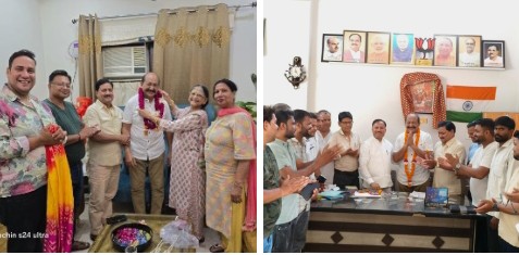 उधर  नवज्योति कालोनी में वरिष्ठ अधिवक्ता के के गुप्ता के आवास पर भी सुधीर गोयल का  फूलमाला पहनाकर व मिठाई खिलाकर स्वागत किया ।