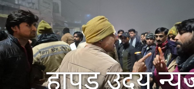जानकारी के अनुसार हापुड़ के बुलन्दशहर रोड़ पर देर रात बिरयानी के ठेले पर शराबियों ने खरीददारी कर रहे युवकों ने बदतमीजी करनी शुरू कर दी। मामला सड़क पर आ गया। सूचना पर पुलिस पुलिस से शराबियों ने हाथापाई व धक्का मुक्की शुरू कर दी। करीब आधे घंटे तक बीच सड़क पर चला जमकर हंगामा हुआ । सूचना के बाद अतिरिक्त पुलिबल बुलाया गया। तीन लोगों को हिरासत में लेकर पूछताछ जारी। हंगामे के दौरान सड़क पर लगा जाम लगा रहा । घटना का वीडियो वायरल हो रहा है।