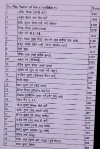 कनिष्ठ उप-प्रधान पद पर संजीव कुमार आढ़ वालें निर्वाचन किए गए और 22 सदस्यों के परिणाम भी घोषित किए। लोगों ने विजयी सदस्यों को बंधाई दी।