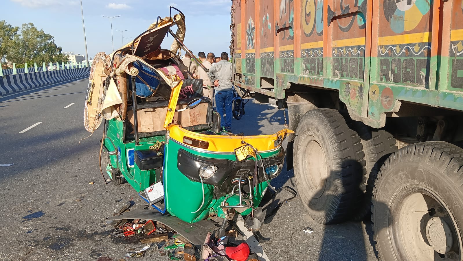 सड़क पर खड़े ट्रक से टकराया थ्री व्हीलर , दो सवारियों की मौत, तीन घायल