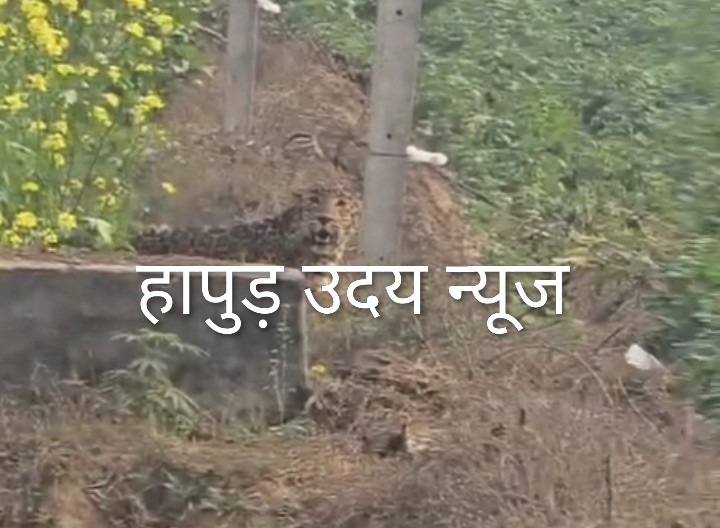 सरसों के खेत में जाल में फंसा तेंदुए , देखने के लिए ग्रामीणों की भीड़ उमड़ी