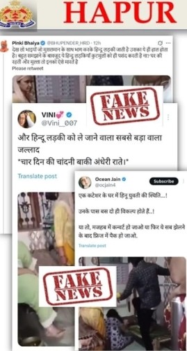 थाना हापुड़ क्षेत्र में पांच माह पूर्व एक मुस्लिम दंपत्ति की मारपीट की वीडियो को शरारती तत्वों द्वारा भ्रामक पोस्ट सोशल मीडिया पर वायरल कर माहौल बिगाड़ने की कोशिश में पुलिस ने एफआईआर दर्ज कर जांच शुरू कर दी है।