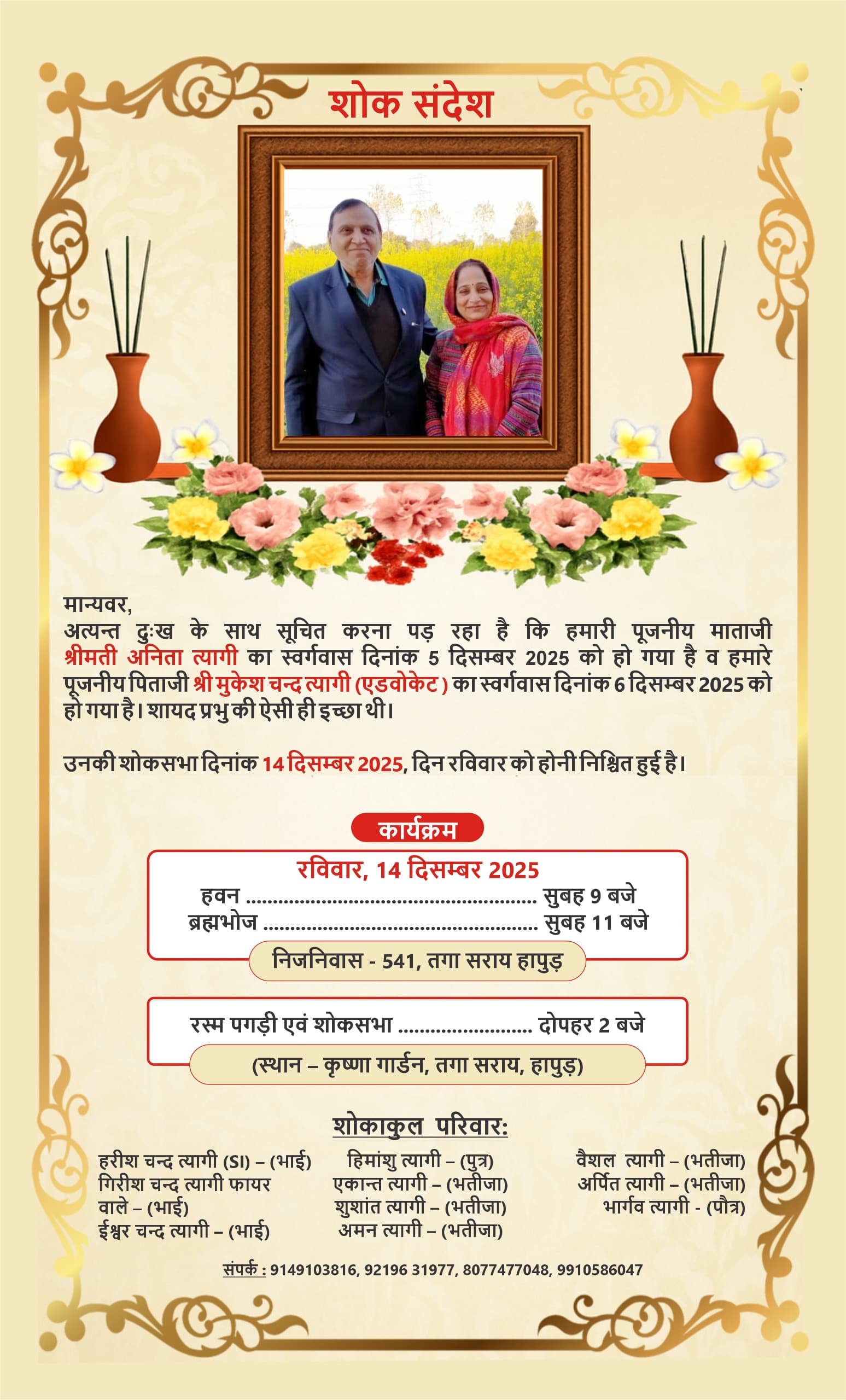Home/News/स्वर्गीय एडवोकेट मुकेश त्यागी व अनिता त्यागी की आज (रविवार ) को आयोजित होगी अरिष्टी News स्वर्गीय एडवोकेट मुकेश त्यागी व अनिता त्यागी की आज (रविवार ) को आयोजित होगी अरिष्टी December 14, 20250 803 Less than a minute December 14, 20250 803 Less than a minute Show More Follow Us Share Facebook X LinkedIn Tumblr Messenger Messenger WhatsApp Telegram