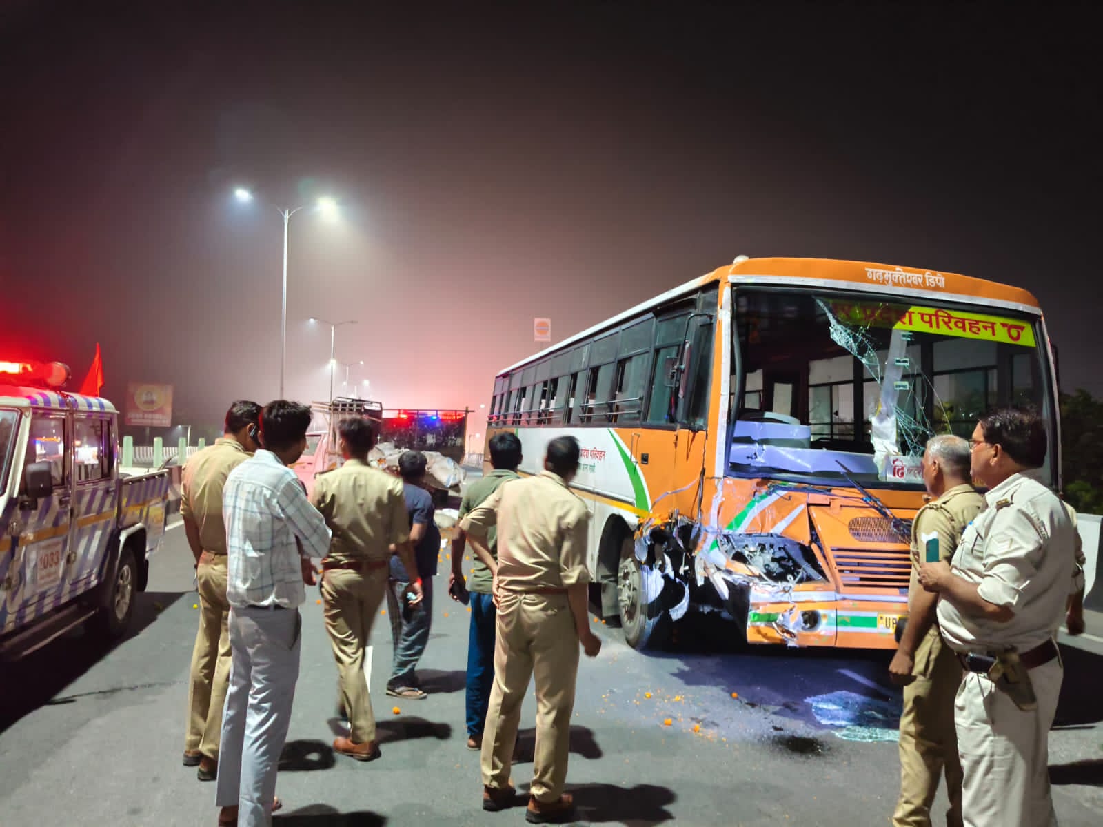 हाईवे पर तेज रफ्तार रोड़वेज बस ने खराब खड़ी पिकअप गाड़ी में मारी टक्कर, युवक की मौत