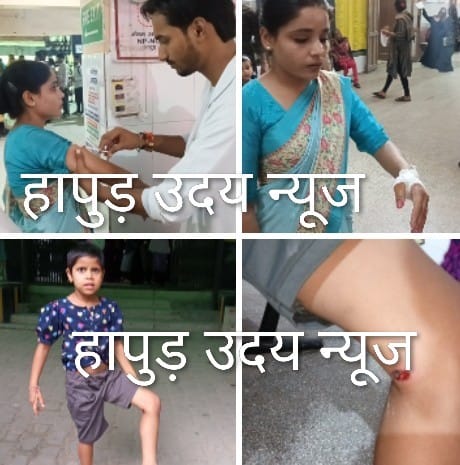 उधर हापुड़ के ही लज्जा पुरी निवासी धर्मेंद्र कुमार की बेटियां व दो बहन रिंकी (25) व उसकी छोटी बहन गुड़िया (21) देर रात खाना खाकर गली में ही टहल रहे थे, तभी पीछे से 6-7 कुत्तों के झुंड ने उन्हें घेर लिया और हमला कर रिंकी के हाथ व उसकी बहन के पैर में काट लिया। चीख-पुकार की आवाज सुनकर परिजन व अन्य लोगों ने मौके पर पहुंच दोनों बहनों को बचाया और घायल बहनों को रैबीज का इंजेक्शन लगवाने अस्पताल ले जाया गया।