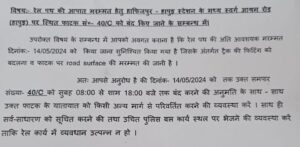 14 मई को सुबह 8 से शाम 6 बजे तक बंद रहेगा स्वर्ग आश्रम रोड (हापुड़) पर स्थित फाटक सं०- 40/C