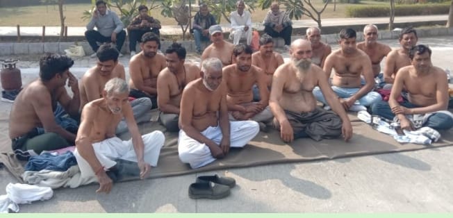 3.80 करोड़ आलू के भुगतान को लेकर किसानों ने किया अर्धनग्न प्रदर्शन, धरने पर बैठे