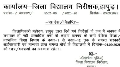 अत्याधिक बारिश के कारण चार सितम्बर गुरुवार को बंद रहेंगे जिलें के समस्त विघालय हापुड़ (यर्थाथ अग्रवाल मुन्ना),। जिलें में…