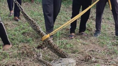 खेत में निकला 20 फुट लम्बा विशालकाय अजगर, ग्रामीणों के होश उड़, वन विभाग ने रेस्क्यू कर जंगल में छोड़ा…