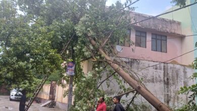 मकान पर तेज आंधी बारिश से हाईटेंशन से गिरा पेड़ , दे रहा है बड़े हादसे को न्यौता हापुड़। हापुड़…