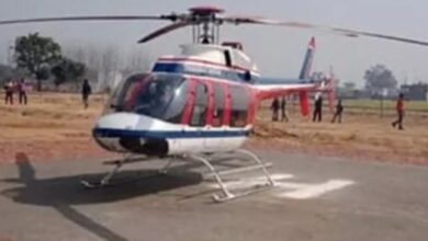 हेलीकॉप्टर से दुल्हनिया को लेने आया दुल्हा , ग्रामीणों की लगी भीड़