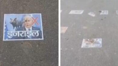 рдИрд░рд╛рди рдкрд░ рд╣рдорд▓реЗ рдХреЗ рд╡рд┐рд░реЛрдз рдореЗрдВ рд╣рд╛рдкреБрдбрд╝ рдХреА рд╕рдбрд╝рдХреЛрдВ рдкрд░ рдЪрд┐рдкрдХрд╛рдП рд░рд╛рд╖реНрдЯреНрд░рдкрддрд┐ рдбреЛрдирд╛рд▓реНрдб рдЯреНрд░рдВрдк рд╡ рдЗрдЬрд░рд╛рдпрд▓ рдХреЗ рдкреНрд░рдзрд╛рдирдордВрддреНрд░реА рдиреЗрддрдиреНрдпрд╛рд╣реВ рдХреЗ рдкреЛрд╕реНрдЯрд░, рдкреИрд░реЛрдВ рддрд▓реЗ рд░реМрдВрдж рд╡рд┐рд░реЛрдз рдЬрддрд╛рдпрд╛