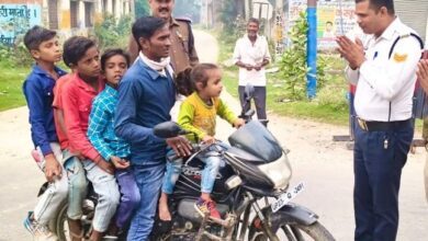 पुलिस का मानवीय चेहरा: ट्रैफिक नियमों की धज्जियां उड़ाते हुए बाईक पर 6 बच्चों को लेकर जा रहे युवक को…