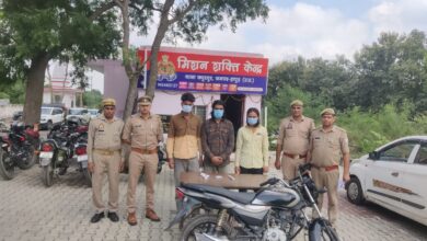 चैकिंग के दौरान तीन वाहन चोर गिरफ्तार, चोरी की बाईक व तंमचा बरामद