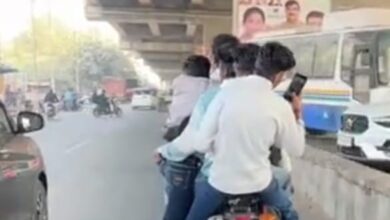 गोद में बैठाकर एक बाईक पर जा रहे पांच युवकों का वीडियो वायरल, 31 हजार रुपए का कटा चालान