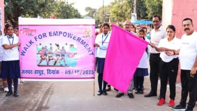 वॉक फॉर एम्पोवेर्मेंट कार्यक्रम में पुलिसकर्मी व स्कूली छात्राओं के साथ निकाली जागरूकता रैली