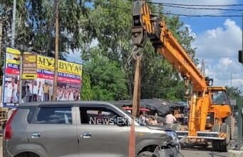 नेशनल हाईवे- 334 पर तेज रफ्तार कार डिवाइडर से टकराई, एयर बैग खुले, बाल बाल बचे झुग्गीवासी ,शराब के नशे में धुत ड्राइवर को बाहर निकला