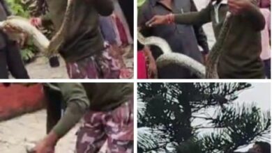 पेड़ पर लटके अजगर को पकड़ जंगल में छोड़ा, लोगों ने ली राहत की सांस
